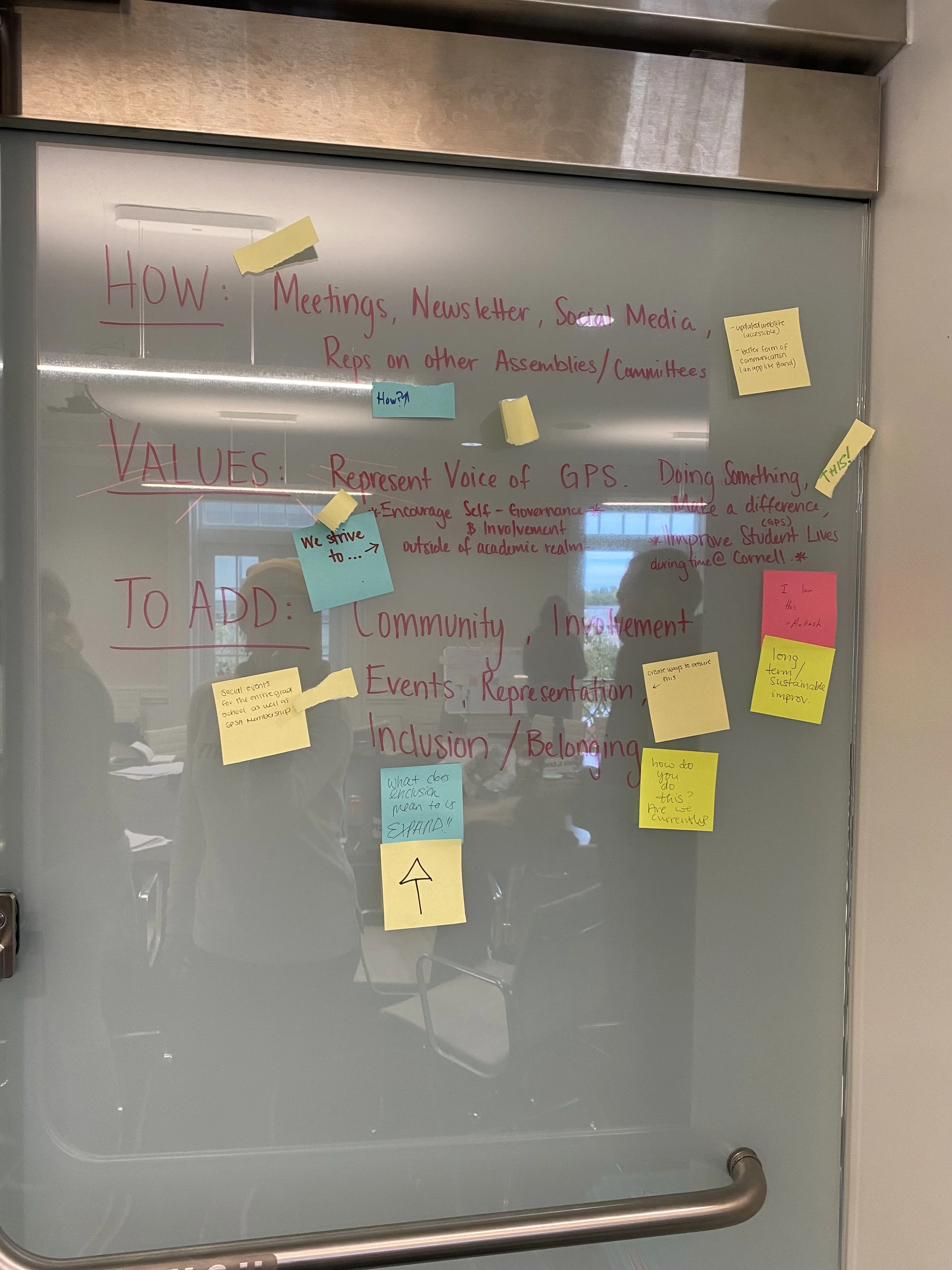 Leadership was given the tools to then host their own GPSA-wide organizational meeting, the first of its kind, to solicit buy-in on high-level goals and objectives and to ideate tactics in collaboration with all members.